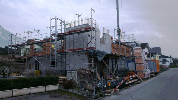 Anfangs Jahr 2013 haben wir mit den Bauarbeiten am MFH begonnen. Das Baustellenteam war nicht an der Fasnacht, aber Schnee und Kälte haben die Bauarbeiten ein paar Tage einfrieren lassen.