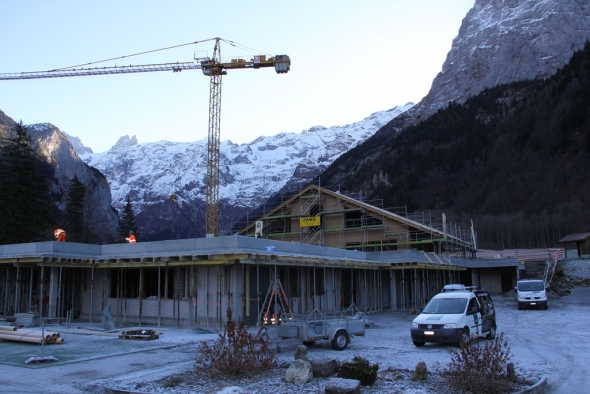 Es wird immer kälter und kälter in Engelberg (bis zu -15°C)! Viele der Arbeiten mussten daher ins warme Gebäude verlegt werden, welches wir seit Januar provisorisch beheizen.