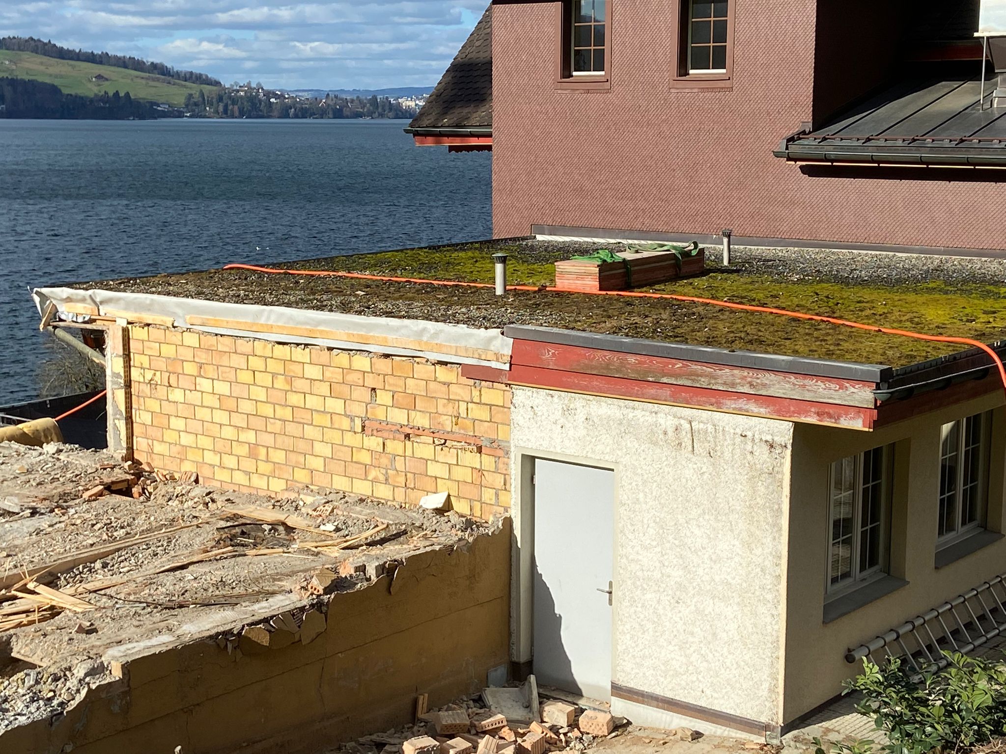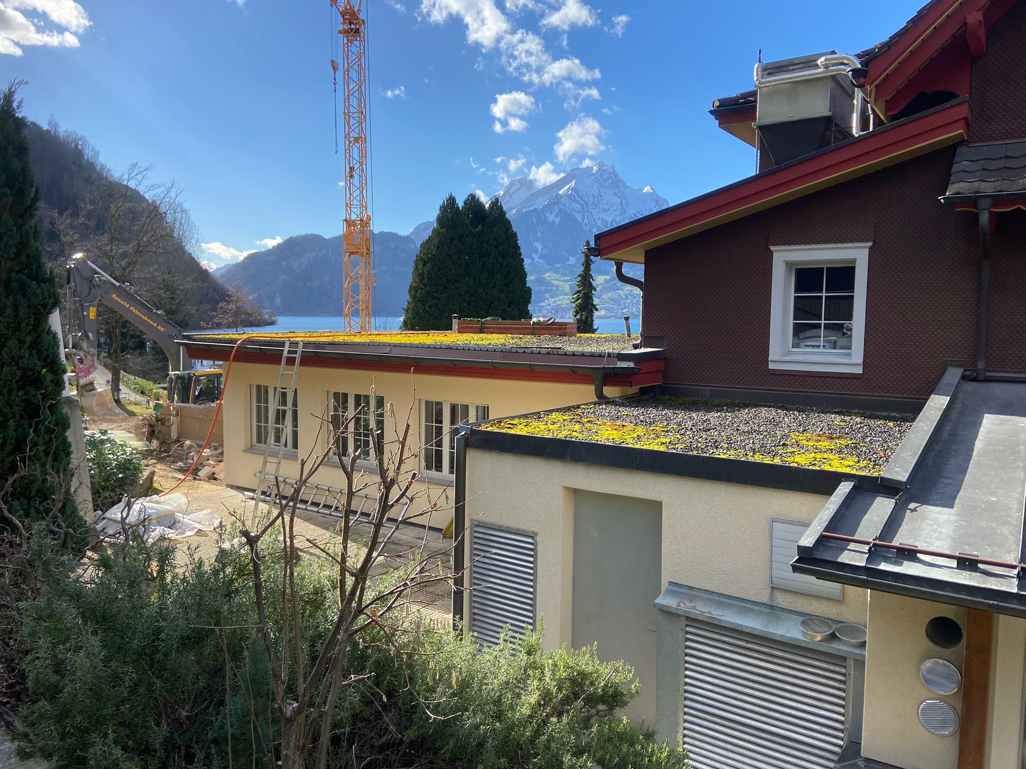 Wir nutzen das tolle Frühlingswetter und kommen mit den Abbrucharbeiten des alten Nebengebäudes in Kehrsiten gut voran.