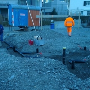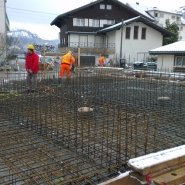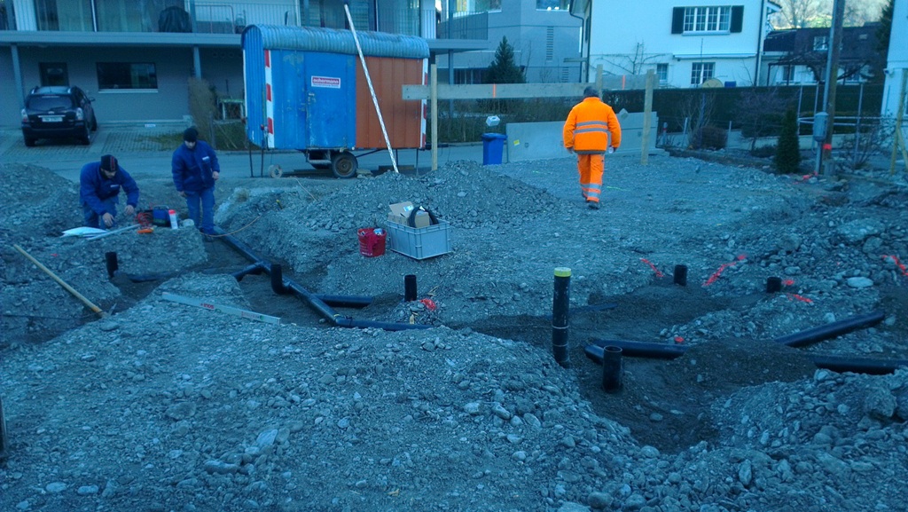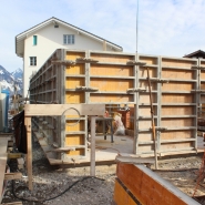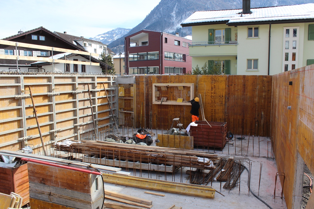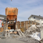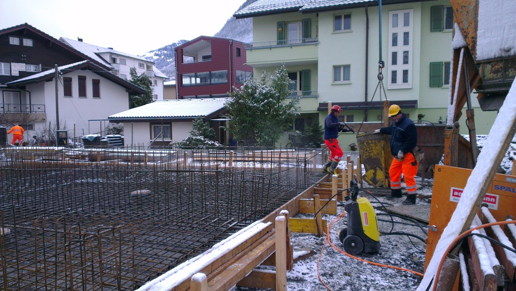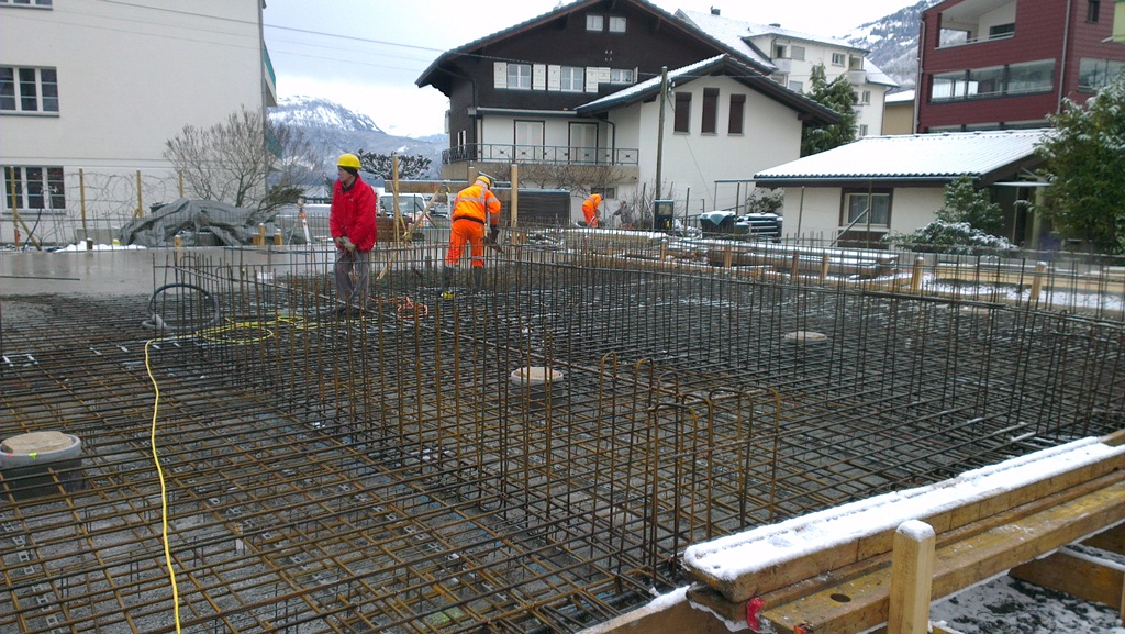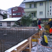 Anfangs Jahr 2013 haben wir mit den Bauarbeiten am MFH begonnen. Das Baustellenteam war nicht an der Fasnacht, aber Schnee und Kälte haben die Bauarbeiten ein paar Tage einfrieren lassen.